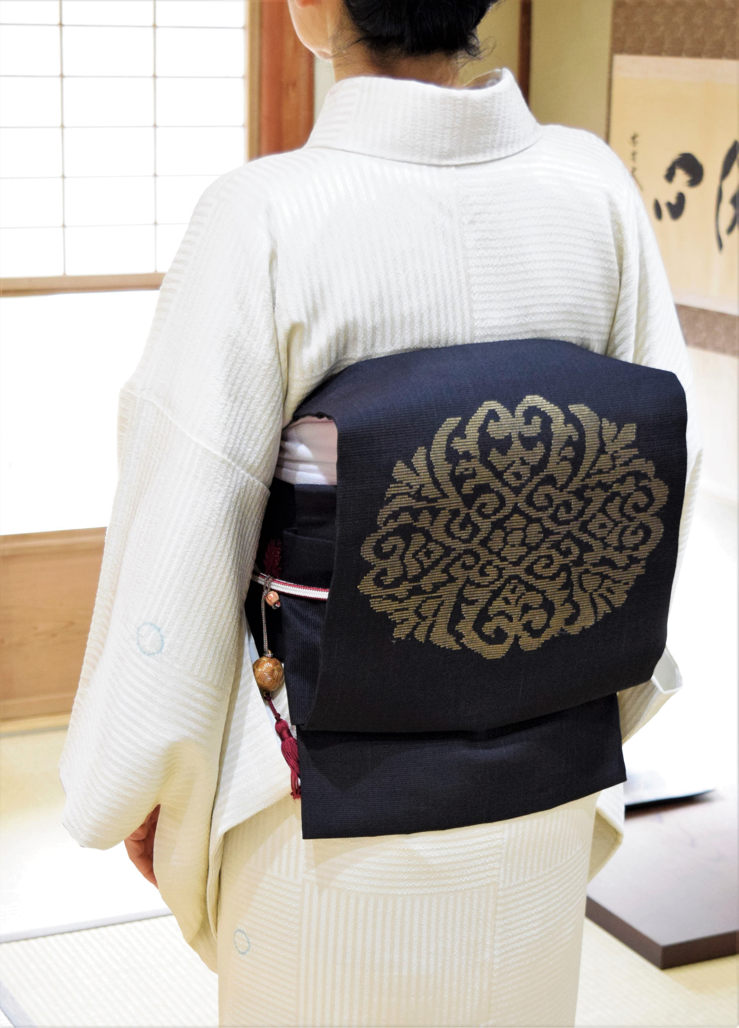 飛び柄小紋 白練り 名古屋帯 華文 夢訪庵