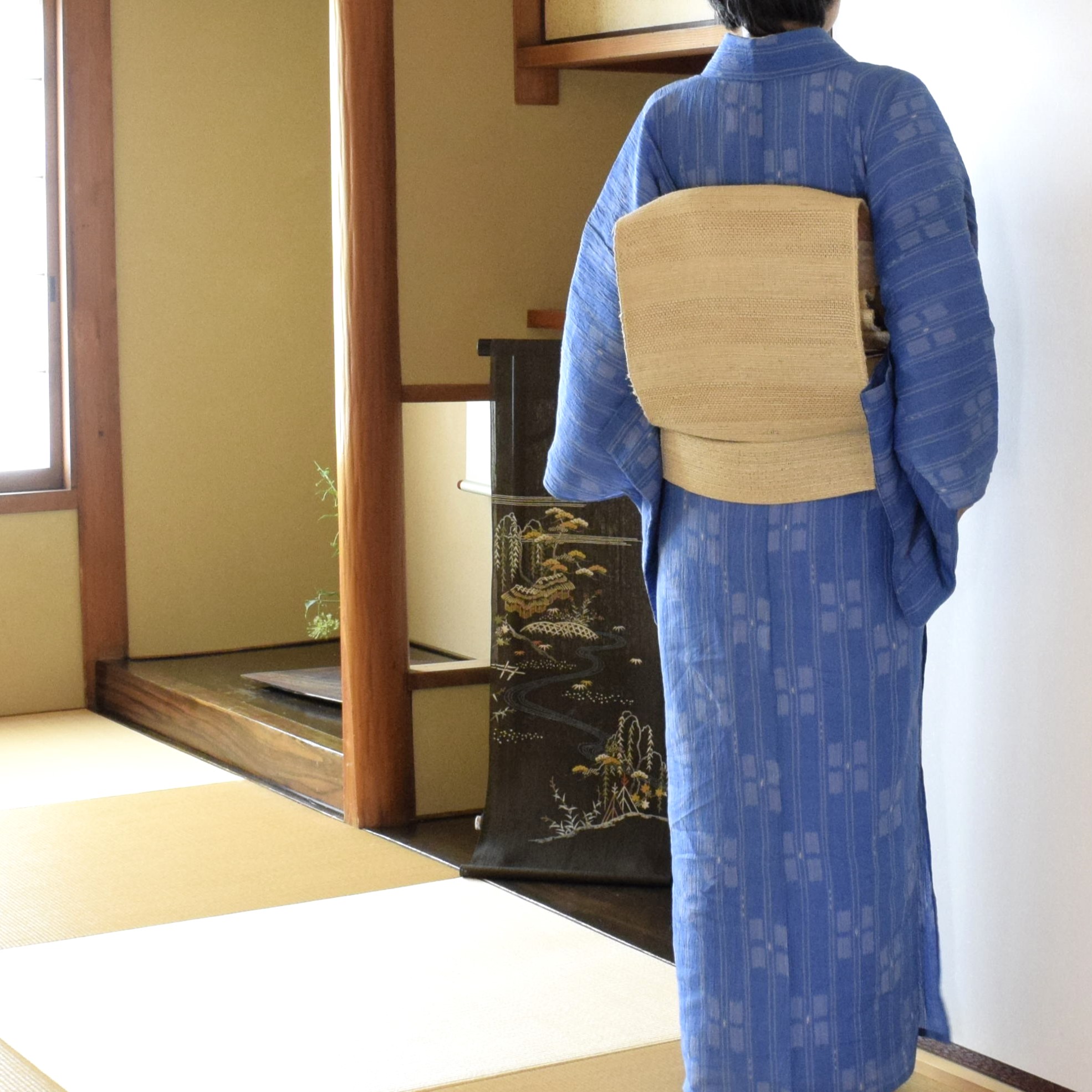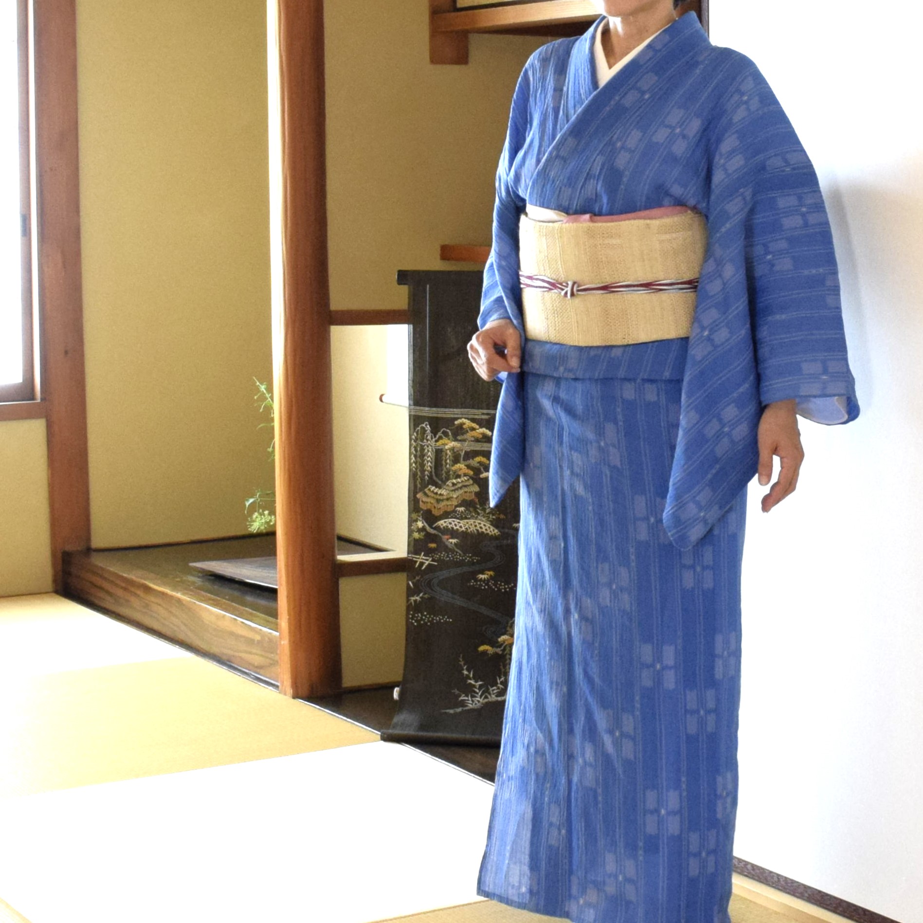 紬地を締めていたので
