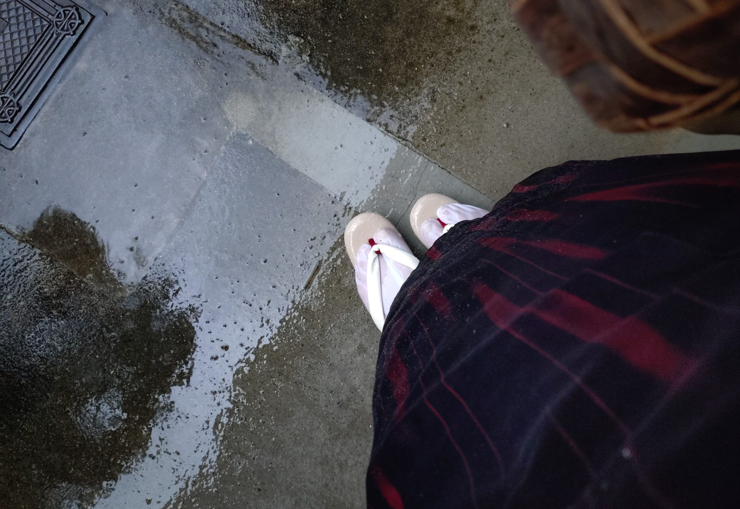 浴衣の裾はビチャビチャだわ
