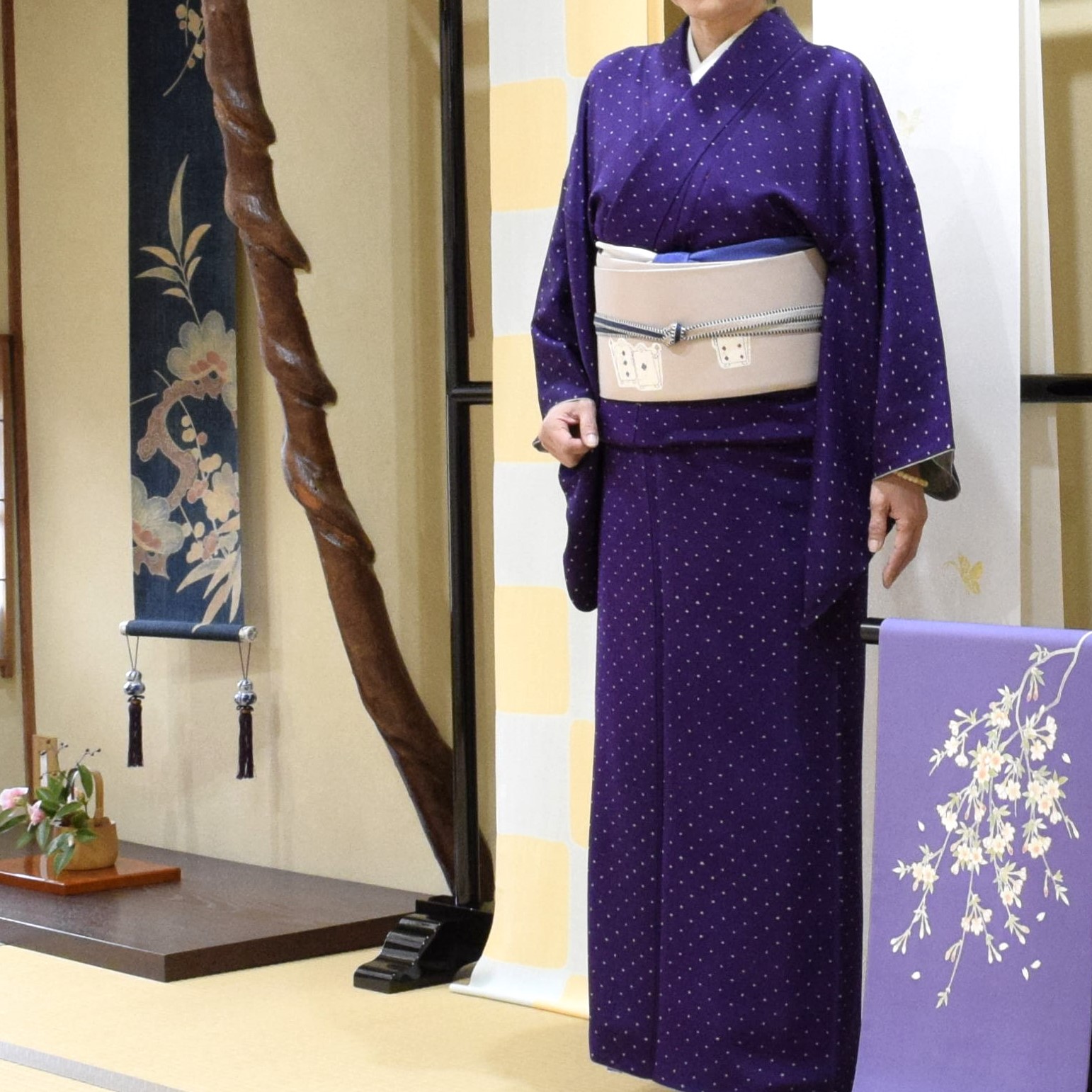 と、一越の小紋を